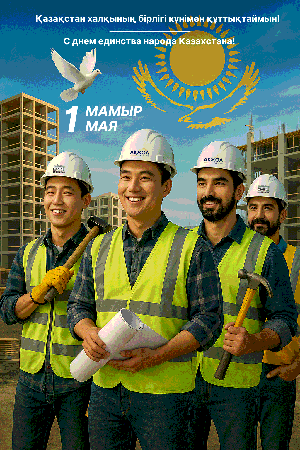 Группа компаний «Ақ жол құрылыс» от всей души поздравляет вас с 1 мая — Днём единства народа Казахстана!
